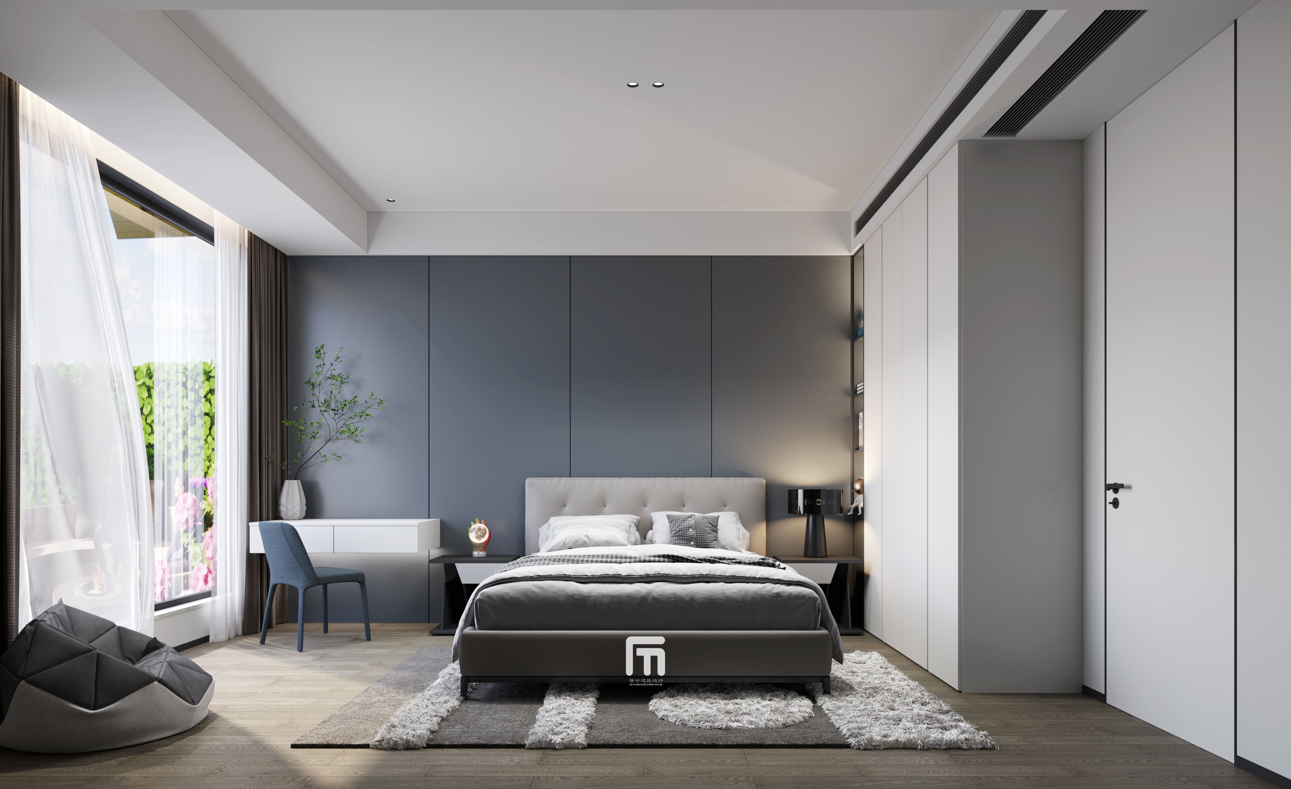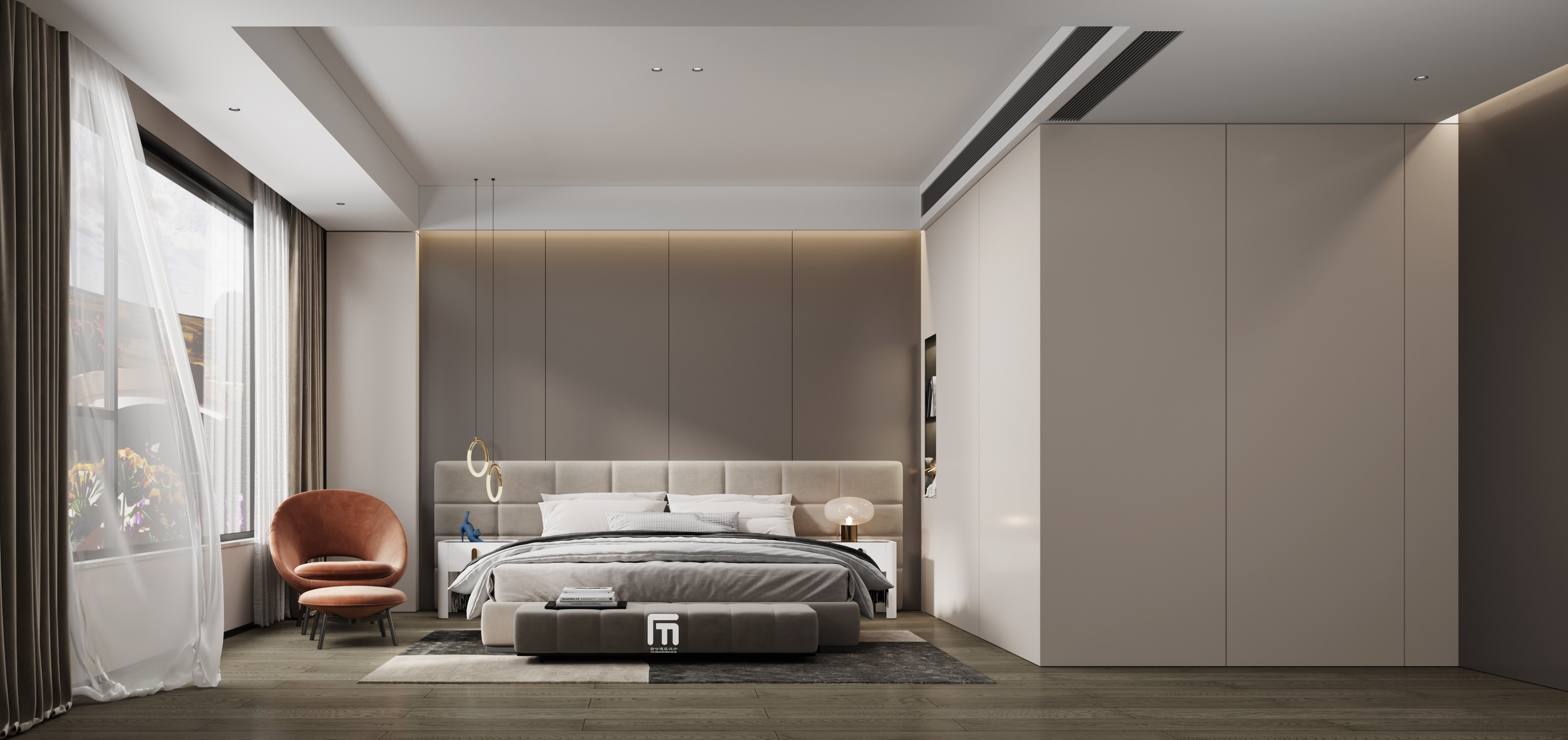 主卧延续了整体空间的极简设计语言