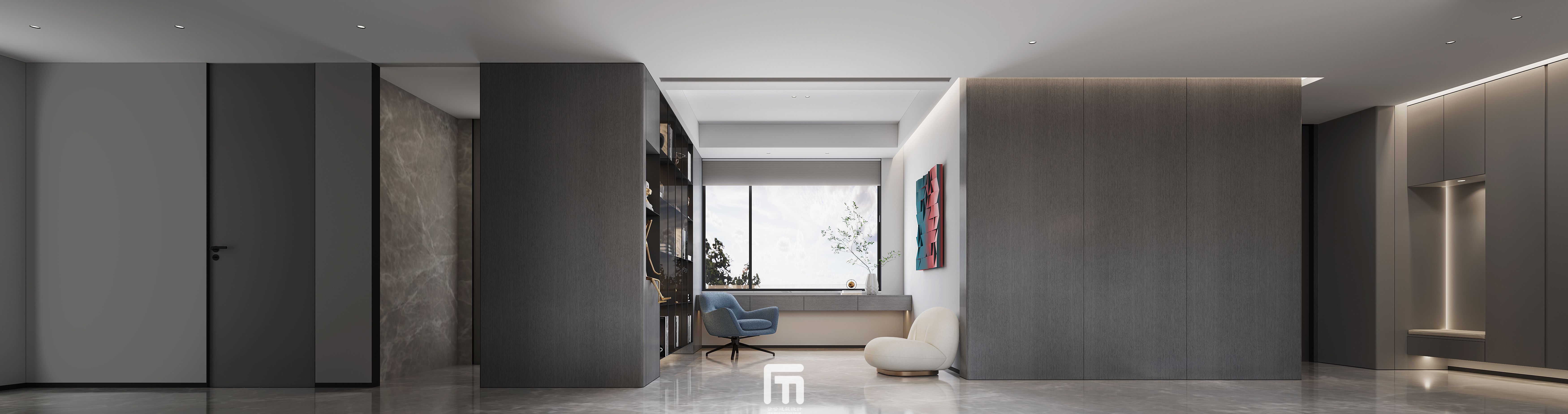 浅灰木的配色除却浮躁,没有过多的装饰,利用灯光
