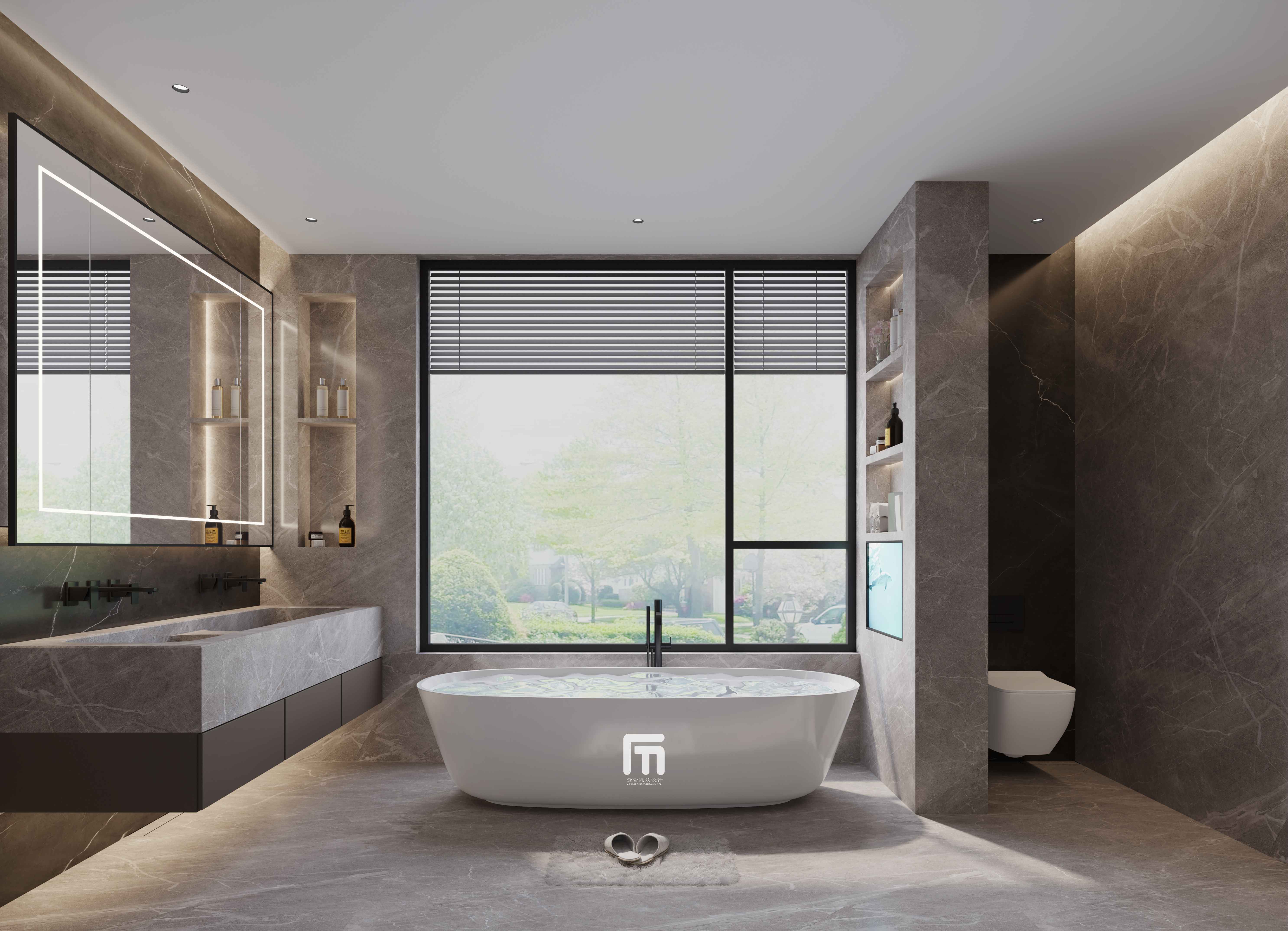 主卫空间以灰色岩板为主色调,让空间显得更为干净
